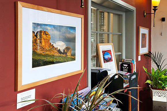 My exhibition (one of many on this years feva Arts Trail) explores beautiful sandstone formations, mainly from the Arizona and Utah wilderness in the western USA but includes images closer to home in the form of the towering sandstone cliffs of the Jurassic Coast near Burton Bradstock in Dorset and the gritstone of Yorkshire’s own Cow and Calf Rocks on Ilkley Moor, viewed at sunrise (above).