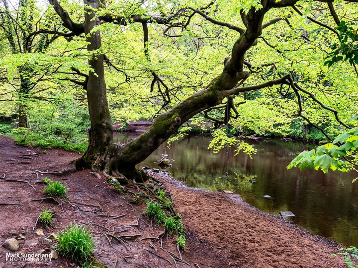 The relections of spring foliage were gorgeous at this old tree with three mossy trunks overhanging the river – I’ve photographed it before and unfortunately there’s now a bit missing! One of the trunks must have been damaged in the wind – you can see a previous version taken one autumn on the website.
