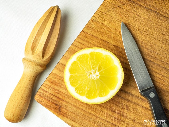 I’ve had a go a some flat lay still life ideas like the one above of a halved lemon and lemon slices with glass and wooden lemon squeezers and a kitchen knife on a wooden chopping board. They’re actually quite good fun to do though a bit tricky to set up without a tripod boom. This one was OK on the kitchen table (I had to stand on a stool!) but any larger arrangements would be better laid out on the floor.